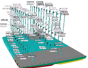 ????實(shí)現(xiàn)這一突破的是黃埔文沖為新加坡太古公司建造的2750箱集裝箱船2號(hào)船H5531。通過(guò)全站儀采集艙內(nèi)導(dǎo)架數(shù)據(jù),利用計(jì)算機(jī)將導(dǎo)架間數(shù)據(jù)模型與集裝箱數(shù)據(jù)模型進(jìn)行對(duì)比分析,從而實(shí)現(xiàn)模擬試箱。通過(guò)對(duì)H5531船全船導(dǎo)架數(shù)字化模擬,并將其與傳統(tǒng)實(shí)體試箱進(jìn)行對(duì)比,狀態(tài)完全吻合。