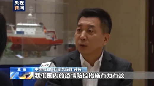 中國船舶集團副總經(jīng)理 孫偉:其中重要的一條,就是我們國內疫情防控措施有力有效,堅定了船東對中國企業(yè)的信心,我們的研發(fā)人員主動作為、創(chuàng)新工作,確保了在疫情下和客戶的溝通交流各個環(huán)節(jié)的暢通、高效。
