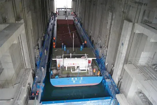 而在上述水電站過船設施工程建設中,也出現了中國船舶集團旗下院所、船廠、配套企業(yè)等相關單位的身影。烏江構皮灘水電站通航工程被視為貴州融入長江、通江達海的關鍵工程。該工程線路總長2306米,概算總投資29.51億元,設計通航標準為四級航道,最高通航水頭達199米,是世界上通航水頭最高、水位變幅最大的通航工程。