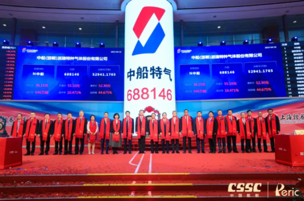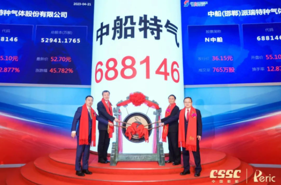 4月21日,中國船舶集團有限公司旗下中船(邯鄲)派瑞特種氣體股份有限公司(簡稱:中船特氣,證券代碼:688146)首次公開發(fā)行A股上市儀式在上海證券交易所舉行。這是中國船舶集團旗下第12家上市公司,也是集團公司重組后首家在科創(chuàng)板公開發(fā)行A股的上市公司。中國船舶集團黨組書記、董事長溫剛出席儀式,黨組成員、總會計師賈海英出席儀式并致辭,黨組成員、副總經(jīng)理盛紀(jì)綱出席儀式。