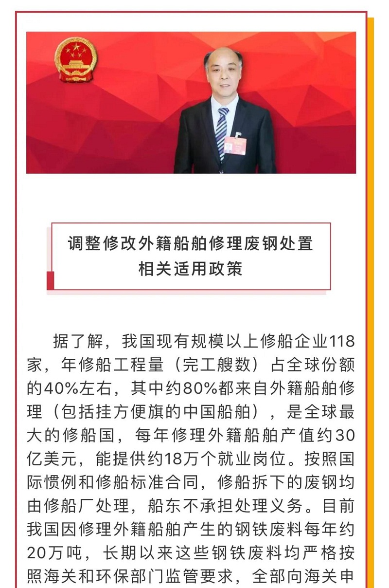 船舶看兩會(huì)|全國人大代表馬加友:修船廢鋼政策調(diào)整勢在必行!