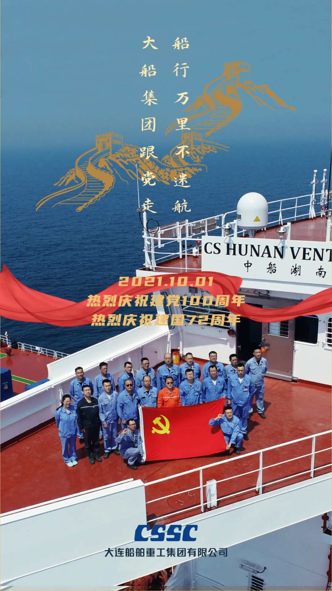 一輪紅日從國之滄海升起,捍衛(wèi)萬里海疆的海上長城深海逐浪,其后盾是強(qiáng)大的祖國母親,中國船舶渤船集團(tuán)祝新中國七十二歲生日快樂!強(qiáng)軍有我,強(qiáng)國有我!