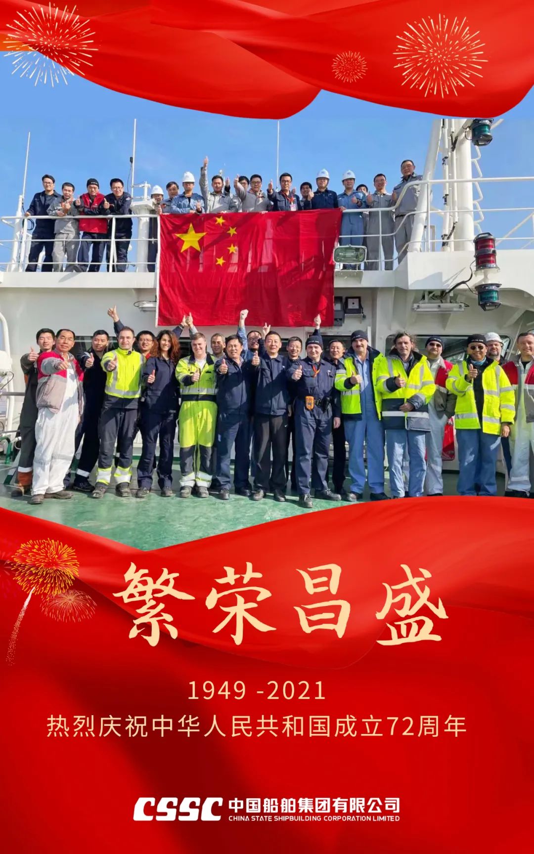 欣望江山千里秀,歡送祖國萬年春,中國船舶七〇九所祝福新中國72歲生日快樂,“中國號”巨輪劈波斬浪再創(chuàng)新輝煌!