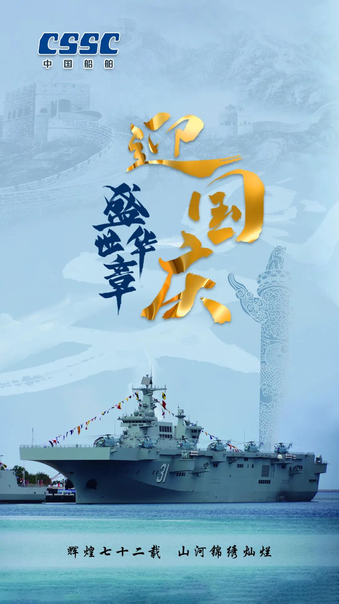 今天,我們迎來新中國72周年華誕。作為我國海軍裝備建設(shè)的主力軍,中國船舶大船集團(tuán)將不忘初心,牢記使命,堅(jiān)定貫徹海洋強(qiáng)國、制造強(qiáng)國、科技強(qiáng)國國家戰(zhàn)略,聚焦主責(zé)主業(yè)、聚力興裝強(qiáng)軍,為實(shí)現(xiàn)中華民族偉大復(fù)興的中國夢而不懈奮斗。