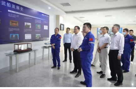 9月7日,中國船舶集團黨組副書記、總經(jīng)理楊金成到中國船舶武船集團調(diào)研,參觀了展廳,聽取了武船集團生產(chǎn)經(jīng)營、重點工作等情況的匯報。