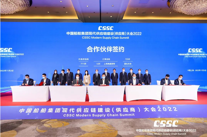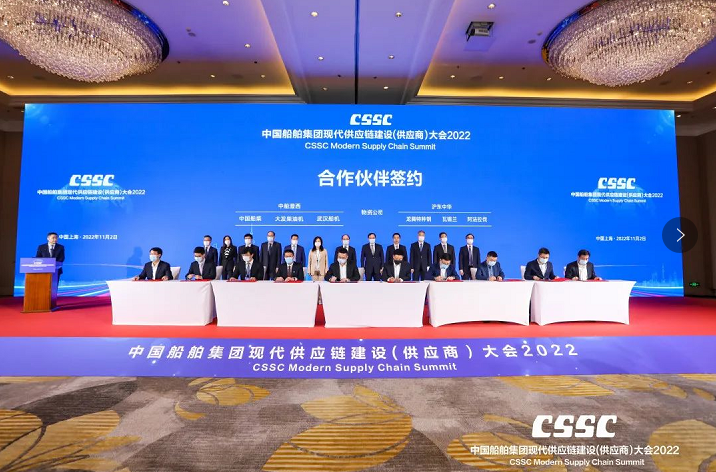 11月2日,中國船舶集團(tuán)有限公司2022現(xiàn)代供應(yīng)鏈建設(shè)(供應(yīng)商)大會在上海舉行。會議旨在貫徹落實(shí)黨的二十大精神,充分發(fā)揮中國船舶集團(tuán)作為中國船舶工業(yè)產(chǎn)業(yè)鏈鏈長的主體支撐和融通帶動作用,打造船舶工業(yè)現(xiàn)代供應(yīng)鏈高端交流平臺,凝聚廣泛共識,深化務(wù)實(shí)合作,服務(wù)國家戰(zhàn)略,共同致力建設(shè)和維護(hù)穩(wěn)定、安全、暢通、高效、可控的全球產(chǎn)業(yè)鏈供應(yīng)鏈體系,共同促進(jìn)產(chǎn)業(yè)的高端化、綠色化和智能化轉(zhuǎn)型,共同引領(lǐng)中國船舶工業(yè)高質(zhì)量發(fā)展,為“造船強(qiáng)國”和上?!拔宕笾行摹苯ㄔO(shè)貢獻(xiàn)中國船舶力量。