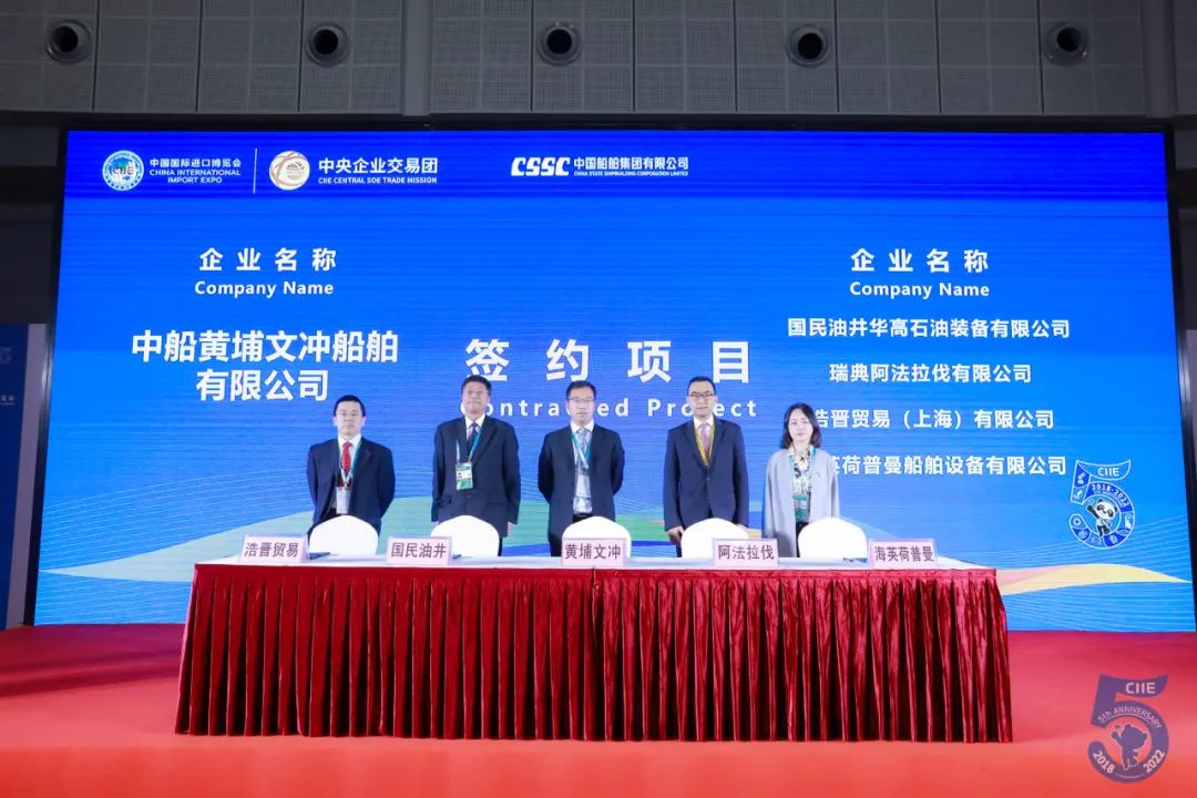第五屆進博會期間,中國船舶集團旗下8家企業(yè)與18家國際合作伙伴先后進行21個項目的集中簽約,累計總金額達4.5億美元,同比增長205.5%。項目涉及柴油機組、發(fā)電機組、船用吊機、通導系統(tǒng)、電力推進系統(tǒng)、數(shù)字化網(wǎng)絡(luò)設(shè)備、LNG供氣系統(tǒng)、殷瓦鋼、再液化裝置等船舶建造領(lǐng)域的各類重要配套設(shè)備,為國際交易市場和全球供應(yīng)鏈的日益繁榮貢獻中國船舶力量。