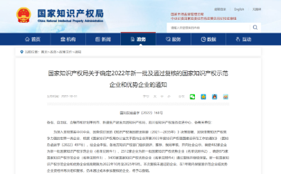 10月31日,國(guó)家知識(shí)產(chǎn)權(quán)局發(fā)布了《關(guān)于確定2022年新一批及通過復(fù)核的國(guó)家知識(shí)產(chǎn)權(quán)示范企業(yè)和優(yōu)勢(shì)企業(yè)的通知》(國(guó)知發(fā)運(yùn)函字〔2022〕160號(hào))。