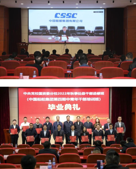 12月9日,中國船舶集團第四期中青年干部培訓班(中央黨校國資委分校2022年秋季處級干部進修班)召開畢業(yè)典禮。中國船舶集團有限公司總經(jīng)理助理、人力資源部(組織人事部)主任唐永春出席儀式并講話,典禮由集團公司黨校常務副校長、綜合院黨委書記楊志軍主持。