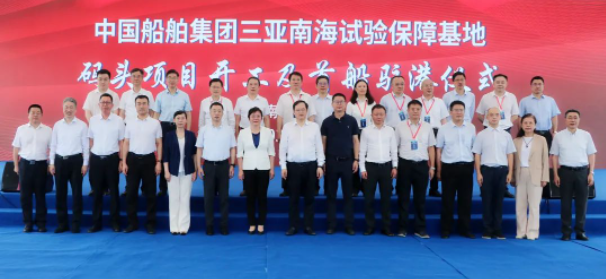 6月14日,中國(guó)船舶集團(tuán)有限公司三亞南海試驗(yàn)保障基地碼頭項(xiàng)目開(kāi)工及首船駐港儀式在三亞舉行。中國(guó)船舶集團(tuán)黨組副書(shū)記、總經(jīng)理?xiàng)罱鸪沙鱿瘍x式并宣布項(xiàng)目開(kāi)工,黨組成員、副總經(jīng)理盛紀(jì)綱出席儀式并致辭,國(guó)防科工局系統(tǒng)工程四司副司長(zhǎng)蘇懷山,海南省副省長(zhǎng)謝京,三亞市委常委、常務(wù)副市長(zhǎng)盛勇軍出席儀式。