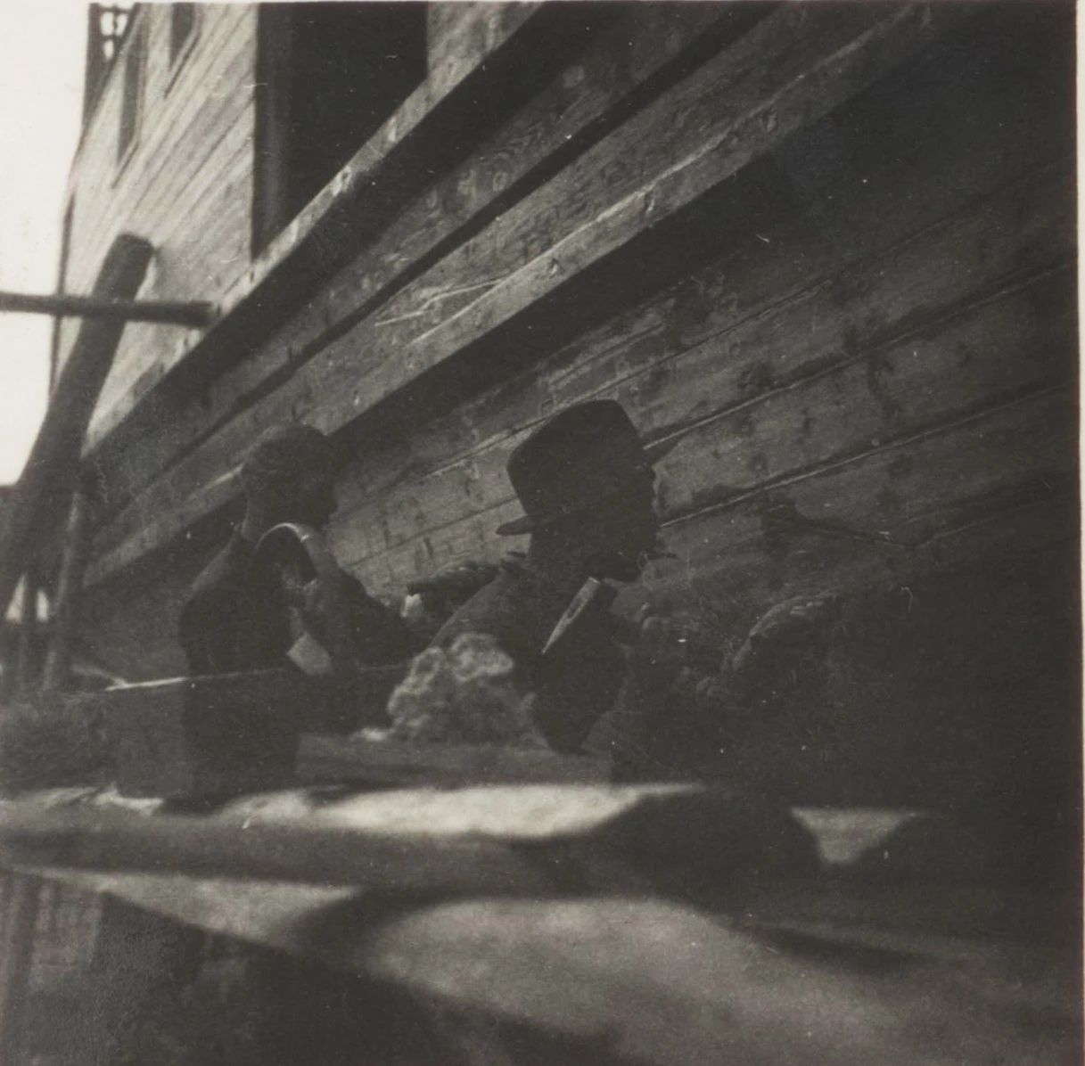 1934年武漢,上世紀(jì)30年代,武昌造船成立之初,工人們以手工作業(yè)“敲敲打打”形式開展修造船業(yè)務(wù)。修造的船只大多為100~300噸、鋼肋骨與木殼結(jié)構(gòu),僅有少量是鋼鉚接船體。建造的船只只能在長(zhǎng)江上航行跑跑運(yùn)輸。為了生存和救國,船廠還建造一些農(nóng)用機(jī)械器具、槍支,以輔助民生、支援抗日。
