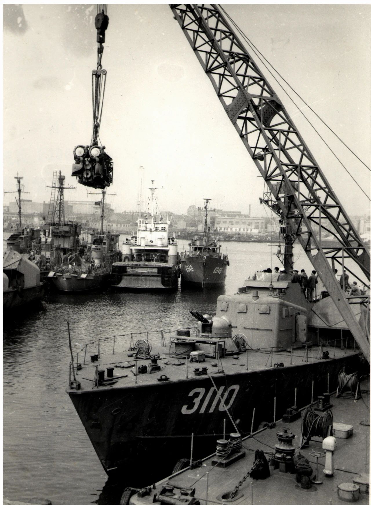 1950年廣州1950年,萬山海戰(zhàn)功臣“前進(jìn)號(hào)”炮艇在工廠下水。