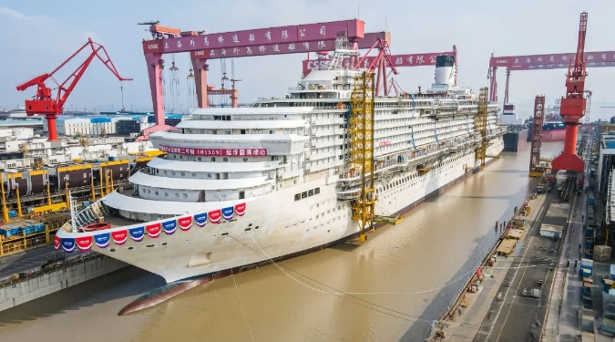“愛達(dá)·花城號”由中船集團(tuán)旗下外高橋造船于2022年8月開工建造,去年4月入塢搭載,今年1月實現(xiàn)全船貫通?!皭圻_(dá)·花城號”長341米、寬37.2米、約14.19萬總噸,相比首艘國產(chǎn)大型郵輪“愛達(dá)·魔都號”體量更大、建造物量更多,對設(shè)計建造管理能力提出了更高要求。目前,“愛達(dá)·花城號”整體建造進(jìn)度已超過70%,比“愛達(dá)·魔都號”起浮時總進(jìn)度提前12%,結(jié)構(gòu)總裝周期縮短至9個月,標(biāo)志著我國大型郵輪建造技術(shù)邁上了新臺階。