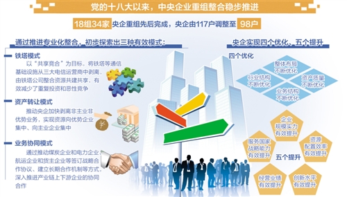 5年來,央企重組著力推進(jìn)強(qiáng)強(qiáng)聯(lián)合,穩(wěn)妥推進(jìn)裝備制造、電力、鋼鐵、航運(yùn)、建材、旅游等領(lǐng)域企業(yè)重組,更好發(fā)揮協(xié)同效應(yīng),實(shí)現(xiàn)優(yōu)化提升。尤其是專業(yè)化整合成效顯著,初步探索出鐵塔模式、資產(chǎn)轉(zhuǎn)讓模式、業(yè)務(wù)協(xié)同模式等3種有效模式??