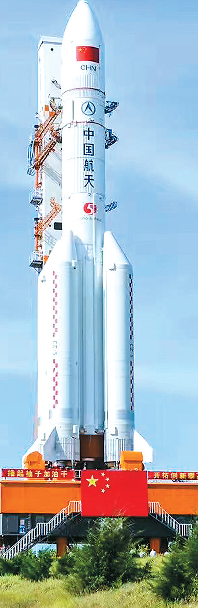 長(zhǎng)征五號(hào)在向發(fā)射架轉(zhuǎn)運(yùn)中(資料圖片) 新華社發(fā)