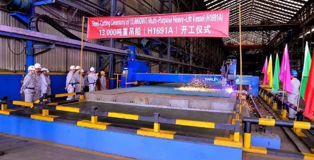 ????11月12日,滬東中華造船(集團)有限公司為中國船舶(香港)航運租賃有限公司建造的系列13000噸重吊船中的6號船開工。該船由上海船舶研究設計院設計,總長149.99米,型寬25.6米,型深13.5米,設計吃水6.8米,結構吃水8.3米,入級DNV GL。 ????滬東中華將嚴格按照建模2.0的要求,以“嚴、緊、細、實”的工作作風,強化風險管控保質(zhì)量過硬,注重細節(jié)管理促效率提升,建造優(yōu)質(zhì)船舶。