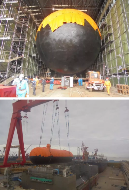????最終,江南造船成功完成兩個14000立方米Type C型單體罐駁運吊裝任務(wù)。