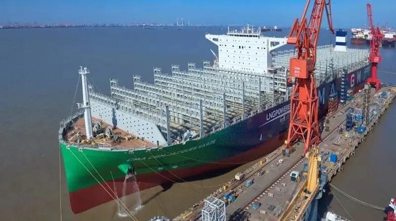 ????3月16日,中國船舶集團所屬滬東中華建造的全球首艘23000箱液化天然氣(LNG)動力集裝箱船開啟了常規(guī)試航之旅。該超大型LNG動力集裝箱船總長400米,型寬61.3米,服務航速22節(jié),載重量近22萬噸,被業(yè)界形容為“綠巨人”;采用了一顆獨一無二的“綠色心臟”——一個18600立方米的MK Ⅲ薄膜式燃料艙,能滿足全球最嚴格排放要求。