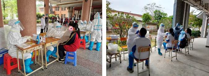 ????當(dāng)天傍晚,兩家醫(yī)院順利完成了852名學(xué)生的咽拭子采樣工作。