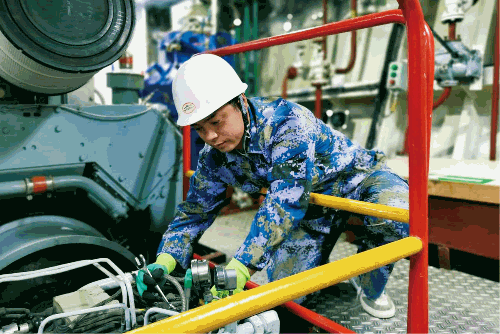 三伏天的機(jī)艙悶熱得像個(gè)蒸籠,溫度超過50°C。面對(duì)突發(fā)的主機(jī)油壓繼電器故障,七六〇所試驗(yàn)中心某船輪機(jī)長揮汗如雨,迅速排查故障,完成搶修。