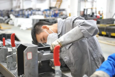 看,昆船公司小伙伴認(rèn)真的眼神。他正專(zhuān)注于成都機(jī)場(chǎng)輸送設(shè)備的零部件焊接裝卡工作。