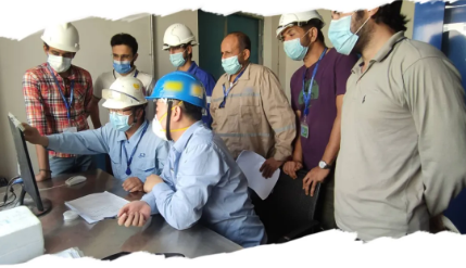 ▲用專業(yè)贏得信賴,海外某項目現(xiàn)場,制氫設備工程部員工加班加點開展設備調(diào)試,指導工作人員熟悉設備操作。圖為技術人員現(xiàn)場開展技術講解培訓。