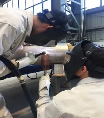 鈦合金材料具有良好的耐高溫、耐腐蝕、耐磨損、耐疲勞、輕量化特點(diǎn),作為船用材料有著廣闊的應(yīng)用前景。2017年,集團(tuán)公司旗下單位曾成立專項(xiàng)組集中攻關(guān)鈦合金管的制造工藝,周蔚慈就是參與者之一。雖然鈦合金材料優(yōu)點(diǎn)突出,但焊縫塑性低、合金導(dǎo)熱性比一般鋼鐵差4倍,且沒有經(jīng)驗(yàn)參考,這為焊接工藝的制訂帶來極大挑戰(zhàn)。