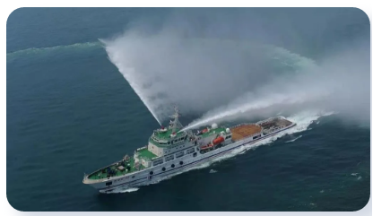 消防船是對(duì)港內(nèi)船舶或岸邊臨水建筑物消防滅火工作的專業(yè)船。船上備有大功率水泵系統(tǒng)、高壓噴水槍和滅火劑等消防器材,并配有救護(hù)人員和醫(yī)療設(shè)備,具備良好的耐波性和操縱性,能在狹窄水道或擁擠的港口內(nèi)執(zhí)行消防任務(wù)。為適應(yīng)油船消防還設(shè)置專門的消防泡沫炮;為了能更深進(jìn)入火區(qū)救火,船上還設(shè)有水幕裝置。在進(jìn)入火區(qū)時(shí),全船由水幕罩著。