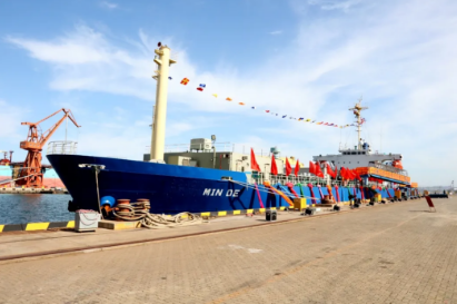 2020年,中國船舶集團(tuán)旗下大船集團(tuán)將散貨船改裝而成的“民德”號(hào)交付。這是全球首制、具有完全自主知識(shí)產(chǎn)權(quán)的舷側(cè)開孔式養(yǎng)殖工船,具有魚類養(yǎng)殖、餌料加工、活魚運(yùn)輸?shù)裙δ堋=淮耐瑫r(shí),大船集團(tuán)與東方漁業(yè)簽約10+8艘大型養(yǎng)殖工船項(xiàng)目。