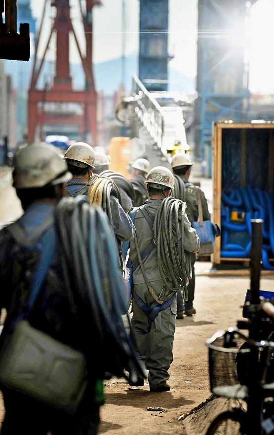 在悶熱且狹小的機艙內(nèi),一個簡單的動作,難度系數(shù)都要成倍增加,考驗的不僅是船舶電工的體力,還有毅力。