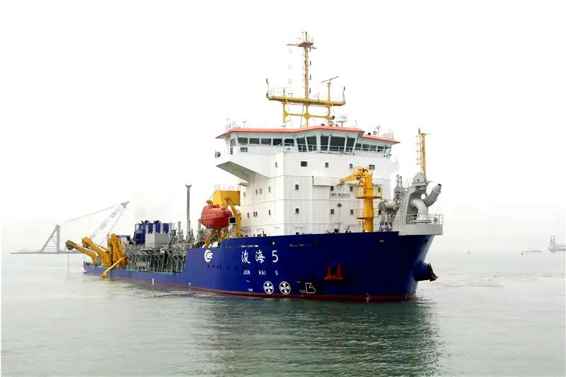 該船是世界首制集沉管隧道浮運安裝于一體的專用船舶,集沉管浮運、定位、沉放和安裝等功能于一體,具有DP動力定位和循跡功能,可以實現(xiàn)沉管管節(jié)智慧安裝,保障施工全過程精度、質(zhì)量可控,提升長距離管節(jié)浮運施工安全保障能力,降低通航安全保障壓力,保障水上公共安全,減少疏浚量近1500萬立方米。