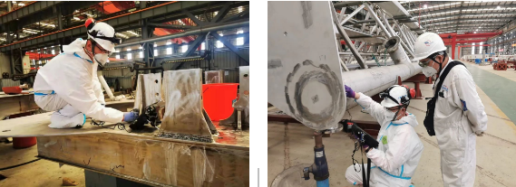 由于該替代檢測(cè)方法需要提供一系列的工藝規(guī)程等相關(guān)技術(shù)文件,并得到LR船級(jí)社和船東的技術(shù)認(rèn)可。按照常規(guī),這一流程需要較長的時(shí)間。為了滿足生產(chǎn)節(jié)拍的需要,檢測(cè)公司接到任務(wù)后,馬上組織專業(yè)技術(shù)人員投入工藝規(guī)程的編制,僅用了三天三夜的時(shí)間就完成應(yīng)急任務(wù),得到了江南造船的高度贊揚(yáng)。