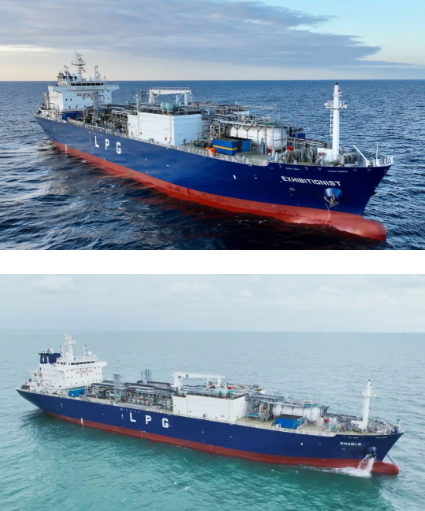 該型船總長159.9米,型寬 25.6米,型深16.5米;船體內布置三個設計溫度為-104℃的C型雙耳罐;入級英國勞氏船級社,由TGE提供液貨系統(tǒng),屬于江南造船“Camel 22E”精品船型?!癈amel 22E”是江南造船知名品牌“Lusitano”系列的優(yōu)化升級版船型,相較于原船型,“Camel 22E”減少了一個液罐但增加了1000立方米的貨物艙容,且在設計航速不變的情況下,油耗大幅降低。