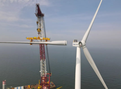 中船海裝機組在山東能源渤中海上風(fēng)電A場址項目進(jìn)行吊裝