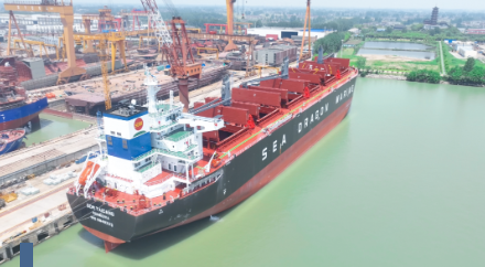 5月15日,中國船舶集團(tuán)旗下中船澄西為交銀金融租賃有限責(zé)任公司建造的64000噸木屑船“SDM TAICANG”號較合同交船期提前77天在揚(yáng)州順利交付。