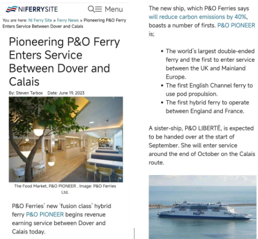 由于“P&O Pioneer”不必掉頭,每次航線將節(jié)省7分鐘的時間和近60%的燃料消耗,從而能在同樣的航行時間下降低航行速度、燃料消耗和排放?!癙&O Pioneer”的首航標(biāo)志著英法航線進入了綠色低碳的新時代。