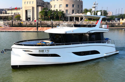 在新技術、新材料應用方面,“智艇1號”采用中國船舶集團旗下科研院所自主開發(fā)生產的碳纖維材質飛橋頂和自主開發(fā)的減搖陀螺,配備兩臺441千瓦的高速主機、兩臺15千瓦的軸帶發(fā)電機、一臺17.5千瓦的柴油發(fā)電機,并特別配備了一套由中國船舶集團旗下科研院所自主研發(fā)的50千瓦時鋰電池和岸電接口混合動力系統(tǒng)。