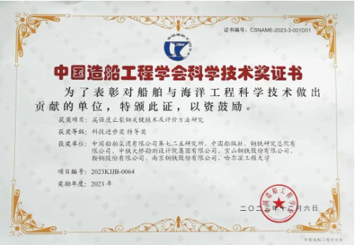 近日,中國造船工程學會發(fā)布了2023年科學技術獎評審結果,中國船舶集團七二五所申報的“高強度止裂鋼關鍵技術及評價方法研究”榮獲科技進步獎特等獎。項目團隊歷經(jīng)十余年技術攻關,在國際上首次提出了止裂性能大尺寸雙重拉伸試驗方法和小尺寸替代試驗方法,并成功將其納入國際船級社協(xié)會(IACS)通用規(guī)范,極大提升了我國在該領域的國際話語權和技術影響力。