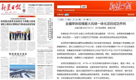 近日,中國船舶集團(tuán)旗下中船科技子公司中船風(fēng)電和哈密國投聯(lián)合開發(fā)的新疆哈密百萬千瓦風(fēng)儲(chǔ)一體化項(xiàng)目首臺(tái)風(fēng)機(jī)成功并網(wǎng)發(fā)電,央視《新聞聯(lián)播》、新華網(wǎng)和《新疆日報(bào)》等紛紛關(guān)注報(bào)道。