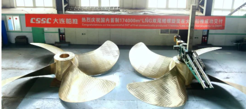 大連公司下屬大連船推成功交付自主開發(fā)設(shè)計(jì)制造的17.4萬(wàn)立方米LNG運(yùn)輸船雙尾鰭螺旋槳。