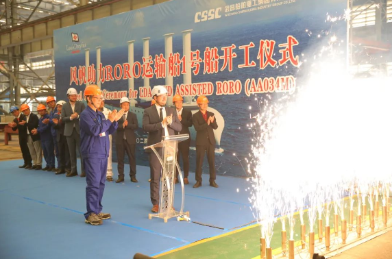 10月24日,中國船舶集團旗下武昌造船為法國路易達孚航運集團公司(LDA)建造的風(fēng)帆助力滾裝(RORO)運輸船首制船順利開工。