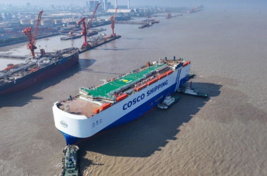 12月2日,外高橋造船1號(hào)船塢迎來8600車液化天然氣(LNG)雙燃料動(dòng)力汽車運(yùn)輸船(PCTC)和11.4萬噸阿芙拉型成品油輪的同日出塢,不僅達(dá)成首制PCTC船塢周期100天既定目標(biāo),在民船建造領(lǐng)域繼續(xù)保持“加速度”,而且也標(biāo)志著該公司新船型和常規(guī)船型同塢同節(jié)拍生產(chǎn)取得新突破。