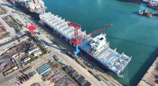 截至目前,北海造船新能源動力船舶造船訂單達(dá)50余艘,覆蓋了LNG、甲醇及氨燃料等船型,綠色船型訂單在手持訂單總量中的占比超90%;成功承接的全球首制32.5萬噸甲醇燃料超大型礦砂船(VLOC)和全球首制21萬噸氨燃料散貨船系列訂單引領(lǐng)了大型主力船舶綠色低碳發(fā)展方向,已經(jīng)開工的31.9萬噸氨燃料預(yù)留VLCC未來可配置兩個6000立方米氨燃料儲罐,為實(shí)現(xiàn)船舶“零碳”運(yùn)營奠定了堅實(shí)基礎(chǔ)。在修船領(lǐng)域,北海造船成功承接了2艘10000TEU集裝箱船甲醇雙燃料改裝項目,此外,Moss型LNG運(yùn)輸船改造為海上浮式儲存裝置的沃德福液化天然氣改裝船(FST)項目也正有序施工。