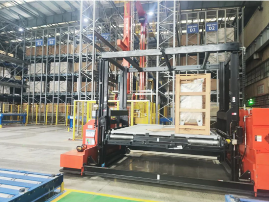 該系統(tǒng)單托盤舉升能力達(dá)到6噸,適用于各類大、重、分布不均、形狀各異物資的立體存儲。采用業(yè)內(nèi)首創(chuàng)的駛?cè)胧阶詣訉?dǎo)向車作為移載動力,通過自主研發(fā)的重型堆垛裝備與智能控制系統(tǒng)聯(lián)動,能夠在復(fù)雜的立體倉庫環(huán)境中準(zhǔn)確定位目標(biāo)并快速平穩(wěn)完成作業(yè)任務(wù)。同時,通過引入現(xiàn)代物聯(lián)網(wǎng)和數(shù)字孿生等先進(jìn)技術(shù),實(shí)現(xiàn)了倉儲物流的智能可視化運(yùn)營。
