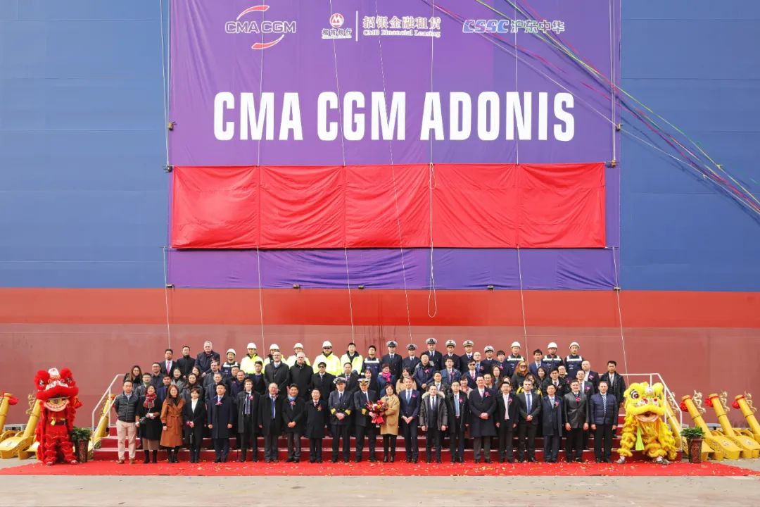 2月28日,中國船舶集團有限公司旗下滬東中華造船(集團)有限公司聯(lián)合中國船舶工業(yè)貿(mào)易有限公司為法國達飛海運集團建造的15000TEU超大型集裝箱船“達飛·阿多尼斯”號在上海命名。這不僅是為達飛集團量身定制的5艘常規(guī)動力系列箱船中的最后一艘,實現(xiàn)了平均每月命名交付一艘的既定目標(biāo),也是繼由該公司建造的5艘全球首創(chuàng)最大、最先進23000TEU雙燃料動力集裝箱船之后,又一款被市場追捧的超大型集裝箱船項目完美收官,進一步鞏固了其全球超大型箱船建造基地的地位。