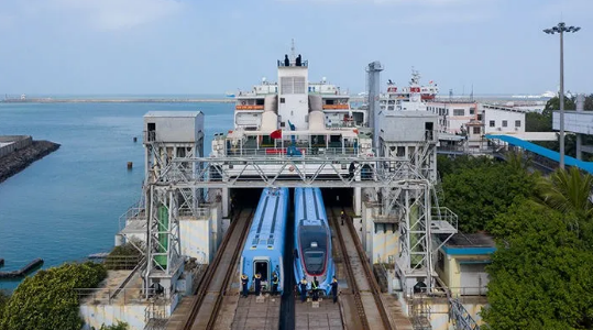 搭載2組復(fù)興號(hào)動(dòng)車組過(guò)海的是“粵海鐵1號(hào)”“粵海鐵2號(hào)”火車渡船。這2艘船均由中國(guó)船舶集團(tuán)旗下七〇八所設(shè)計(jì)、江南造船建造,其中,“粵海鐵1號(hào)”是我國(guó)第一艘自行設(shè)計(jì)、自行建造的跨?;疖嚩纱?,該船于2003年1月投入運(yùn)營(yíng),結(jié)束了海南島與外省不通火車的歷史。