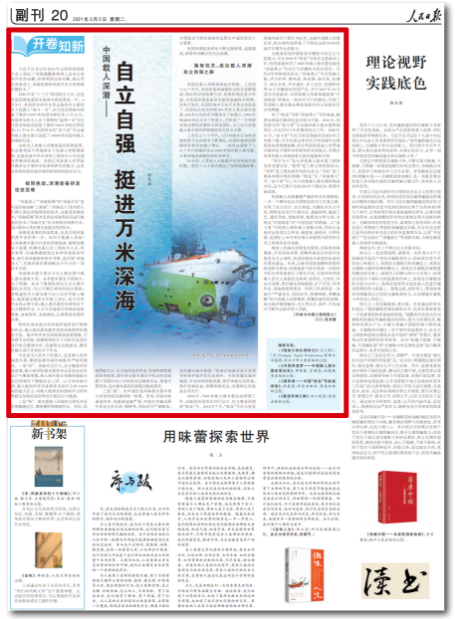 3月2日,人民日?qǐng)?bào) “開卷知新” 專欄刊發(fā)“蛟龍?zhí)枴笨傇O(shè)計(jì)師中國(guó)工程院院士中國(guó)船舶集團(tuán)七〇二所研究員徐芑南文章《中國(guó)載人深潛——自立自強(qiáng) 挺進(jìn)萬米深?!?。
