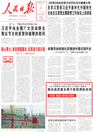 人民日報(bào)2023年5月1日頭版刊發(fā)《中管企業(yè)、中管金融企業(yè)扎實(shí)開展學(xué)習(xí)貫徹習(xí)近平新時(shí)代中國特色社會主義思想主題教育——推動高質(zhì)量發(fā)展不斷取得新成效(學(xué)思想 強(qiáng)黨性 重實(shí)踐 建新功)》。文中提到: