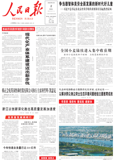 6月2日,《人民日報》在頭版“推動經(jīng)濟(jì)實(shí)現(xiàn)質(zhì)的有效提升和量的合理增長”專欄的開欄篇目《現(xiàn)代化產(chǎn)業(yè)體系建設(shè)邁出新步伐》中,聚焦中國船舶集團(tuán)旗下外高橋造船通過國產(chǎn)首制大型郵輪工程補(bǔ)齊短板,產(chǎn)業(yè)鏈供應(yīng)鏈韌性持續(xù)夯實(shí),初步形成中國郵輪標(biāo)準(zhǔn)體系。