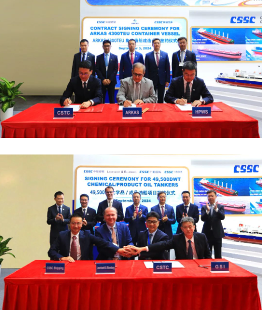 此次展會(huì)上,集團(tuán)公司有關(guān)成員單位負(fù)責(zé)人率隊(duì)赴展會(huì)開(kāi)展重點(diǎn)船海項(xiàng)目經(jīng)營(yíng)洽談并拜訪當(dāng)?shù)睾椭苓厙?guó)家主要客戶。集團(tuán)公司以“高端綠色、領(lǐng)跑未來(lái)”為參展主題,展臺(tái)設(shè)置了集團(tuán)總體區(qū)、高端綠色船舶區(qū)、先進(jìn)動(dòng)力配套區(qū)共3個(gè)展示區(qū)域,重點(diǎn)展示了首艘國(guó)產(chǎn)大型郵輪、27.1萬(wàn)立方米超大型LNG(液化天然氣)運(yùn)輸船、10800車(chē)LNG雙燃料汽車(chē)運(yùn)輸船、全球首艘LNG雙燃料VLCC(超大型油船)、21萬(wàn)噸氨燃料散貨船、9.3萬(wàn)立方米超大型全冷式液化氣船等一系列技術(shù)含量高、全球競(jìng)爭(zhēng)力強(qiáng)的高端綠色船型,以及CPGC-WinGD 10X92DF-M甲醇雙燃料發(fā)動(dòng)機(jī)、船用供氣系統(tǒng)、船用碳捕捉系統(tǒng)、船舶新能源動(dòng)力系統(tǒng)解決方案等滿足IMO(國(guó)際海事組織)當(dāng)前和未來(lái)排放要求的先進(jìn)動(dòng)力配套設(shè)備,充分彰顯了中國(guó)船舶集團(tuán)的國(guó)際化品牌形象及引領(lǐng)國(guó)際船舶市場(chǎng)創(chuàng)新發(fā)展的澎湃動(dòng)力。